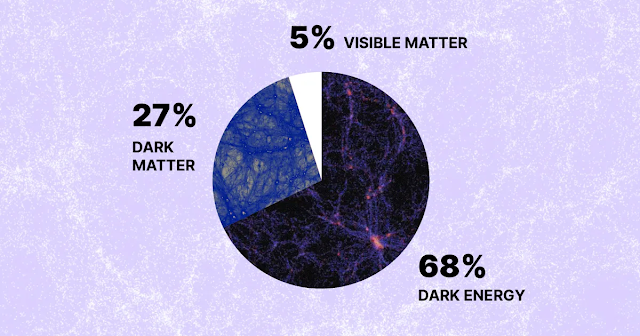 ダークエネルギーの実体は、写真からもお分かりのように、宇宙は可視物質5%、ダークマター27%、ダークエネルギー68%で構成されています。